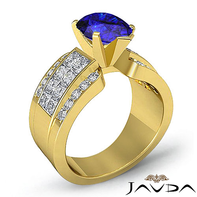 1.14Ct Round & Princess Diamond Engagement Invisible Setting Ring 18k Yellow Gold.