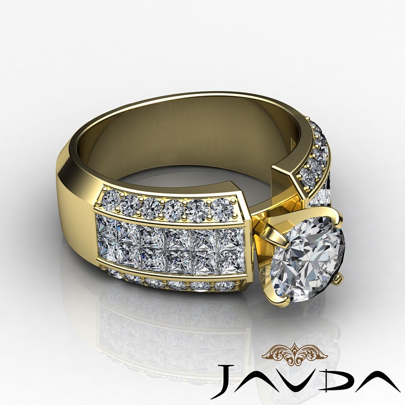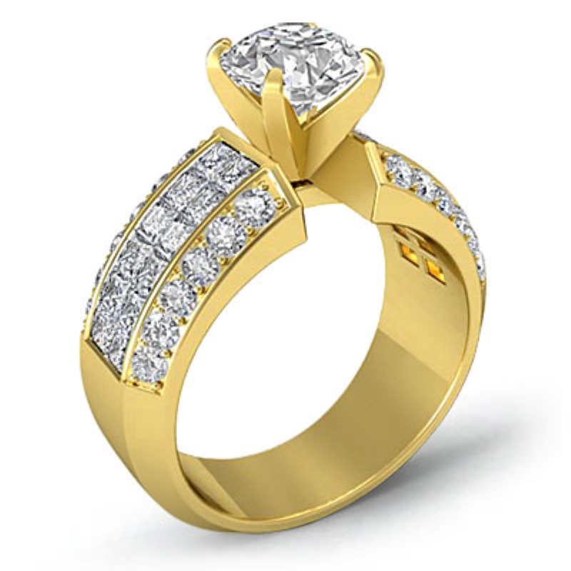 Round & Princess Diamond Engagement Invisible Semi Mount Ring 18k Yellow Gold 2.28Ct.