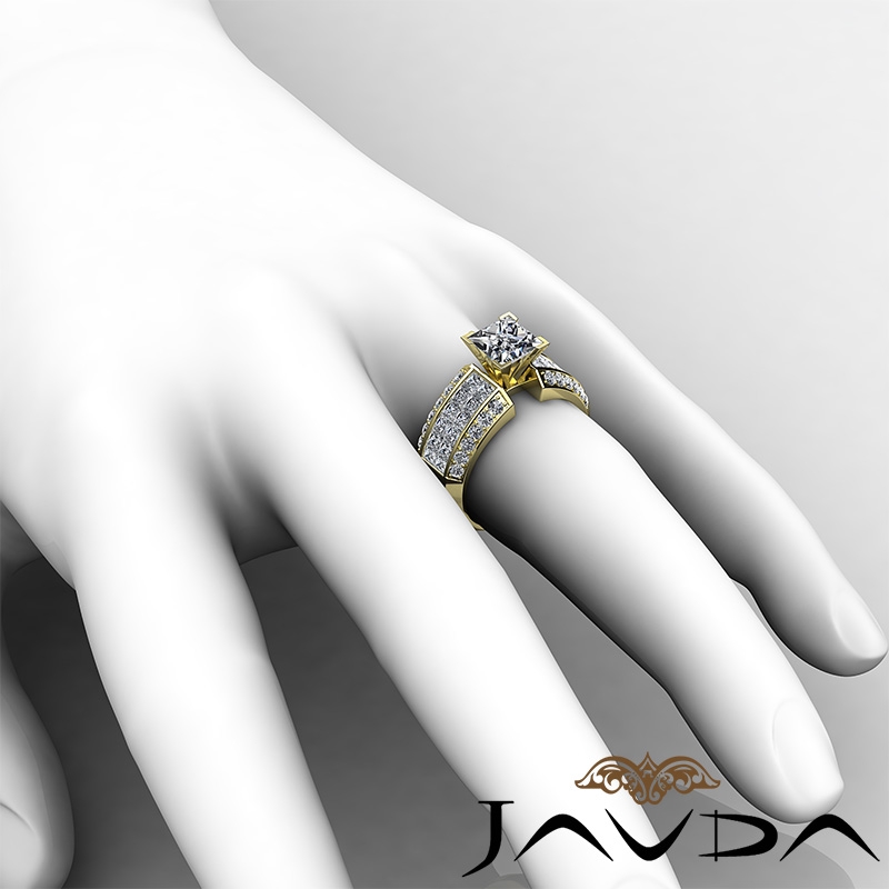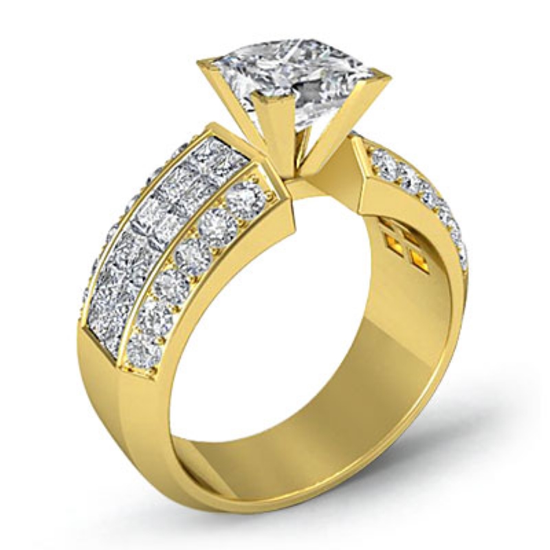 Round & Princess Diamond Engagement Invisible Semi Mount Ring 18k Yellow Gold 1.46Ct.