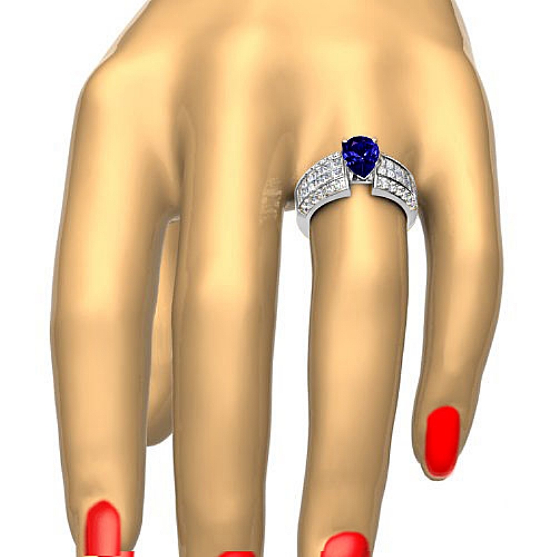 style Engagement Ring, center is Pear shape D Block Tanzanite Report by , Color & clarity, Made in Platinum 950 (2.46 ct. tw.)