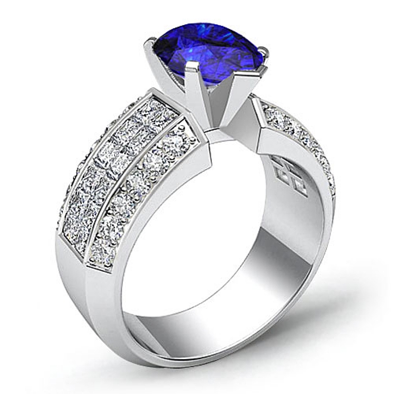 Round & Princess Diamond Engagement Invisible Semi Mount Ring Platinum 950 1.46Ct.