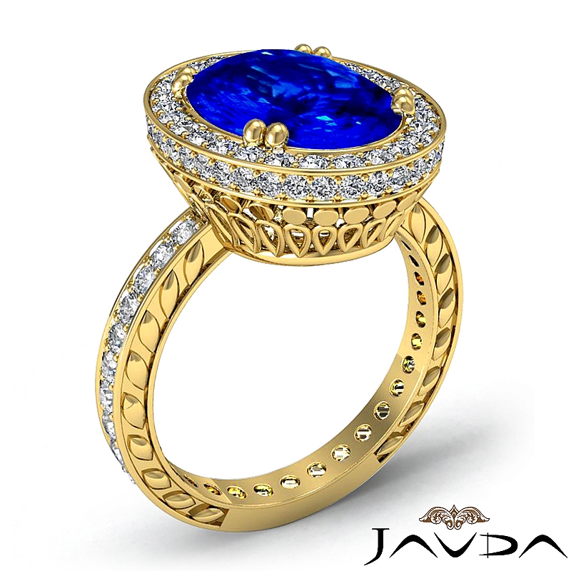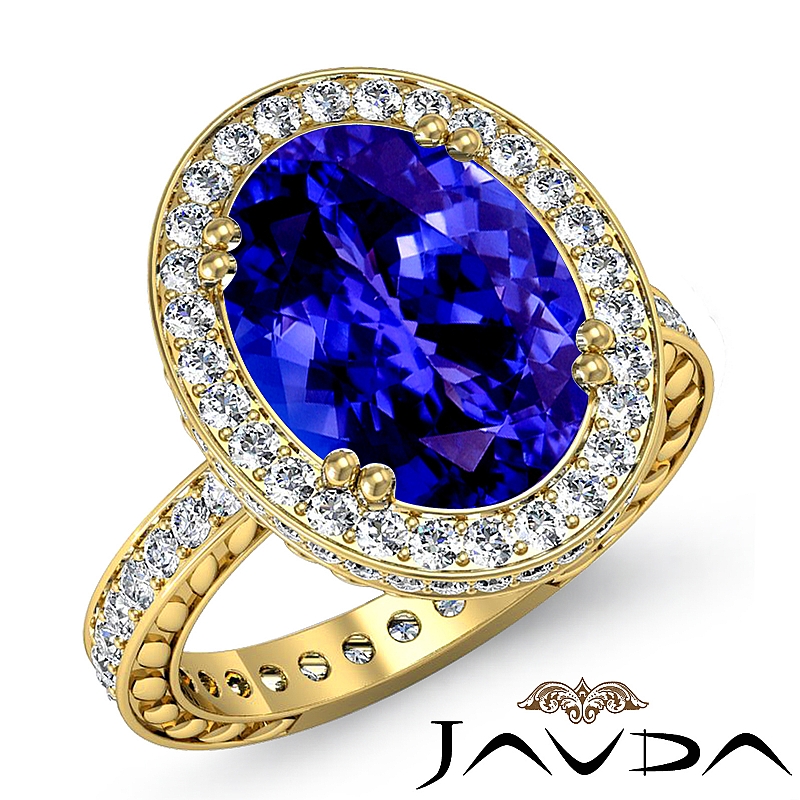 Eternity Filigree Halo style Engagement Ring, center is Oval shape D Block Tanzanite Report by , Color & clarity, Made in 18k Yellow Gold (2 ct. tw.)