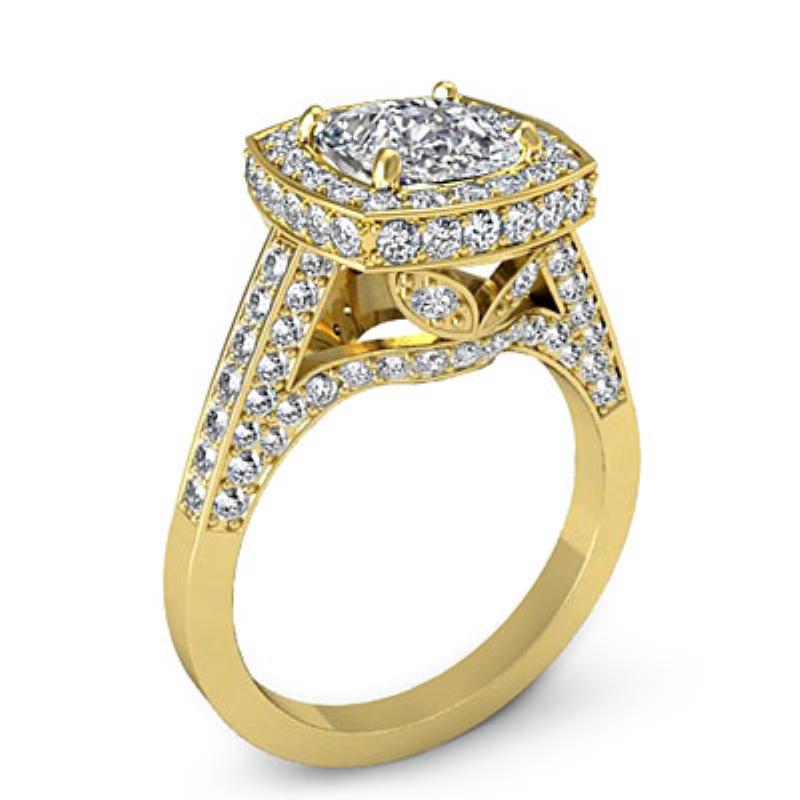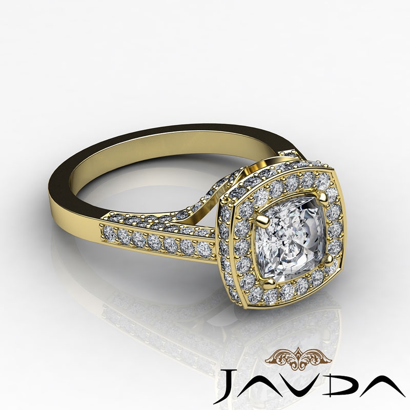 1.3Ct Diamond Engagement Ring Halo Setting 18k Yellow Gold Cushion Semi Mount.