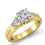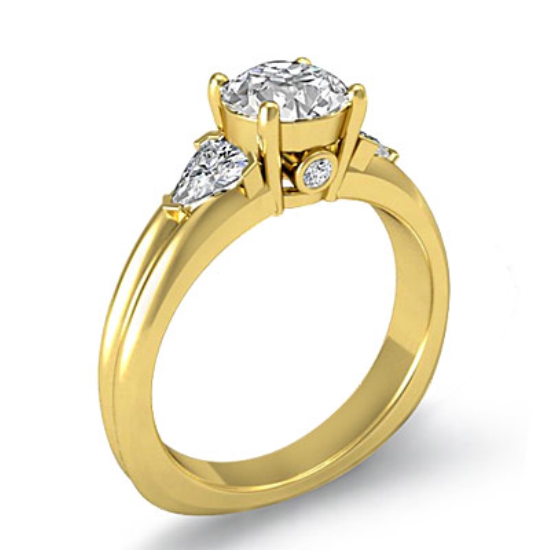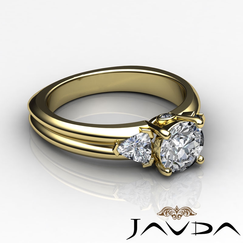 Three Stone Trillion Bezel style Engagement Ring, center is Round shape Diamond Report by GIA, E Color & VS1 clarity, Made in 18k Yellow Gold (1.1 ct. tw.)