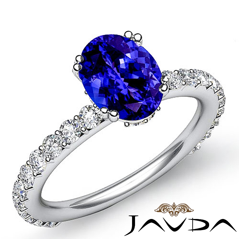 Double Prong Set Side-Stone style Engagement Ring, center is Oval shape D Block Tanzanite Report by , Color & clarity, Made in Platinum 950 (1.45 ct. tw.)