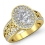 0.75Ct Diamond Engagement Ring 18k Yellow Gold Oval Semi Mount Halo Pave Setting.