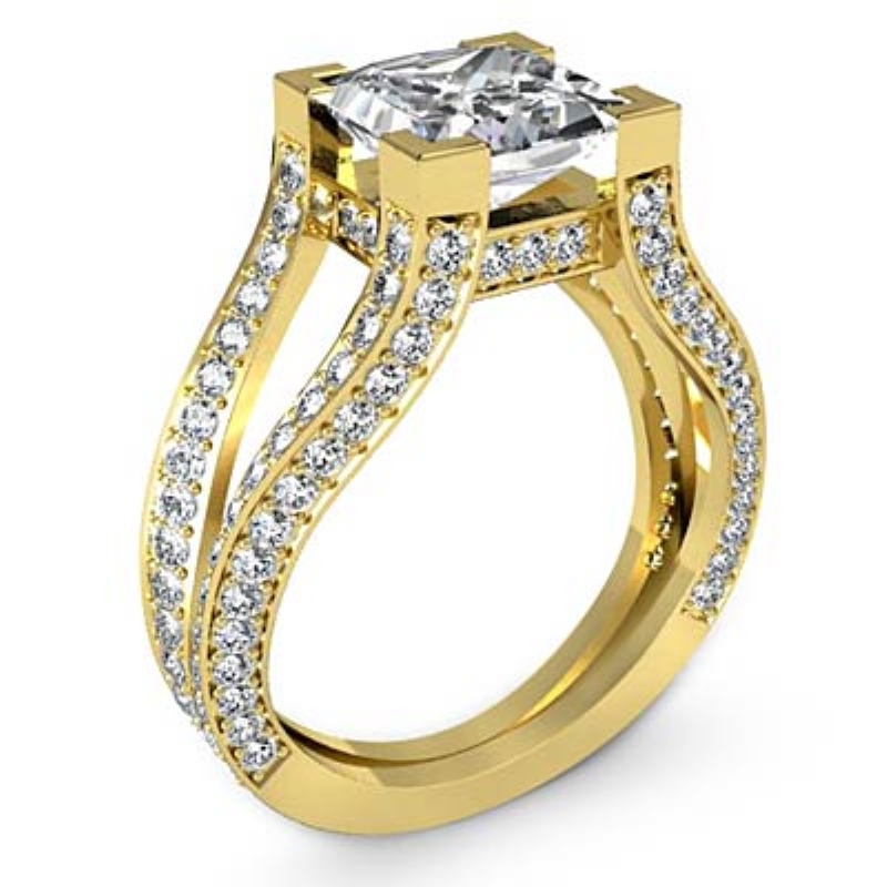 1.4Ct Princess Diamond Engagement Split Shank Ring 18k Yellow Gold Setting.