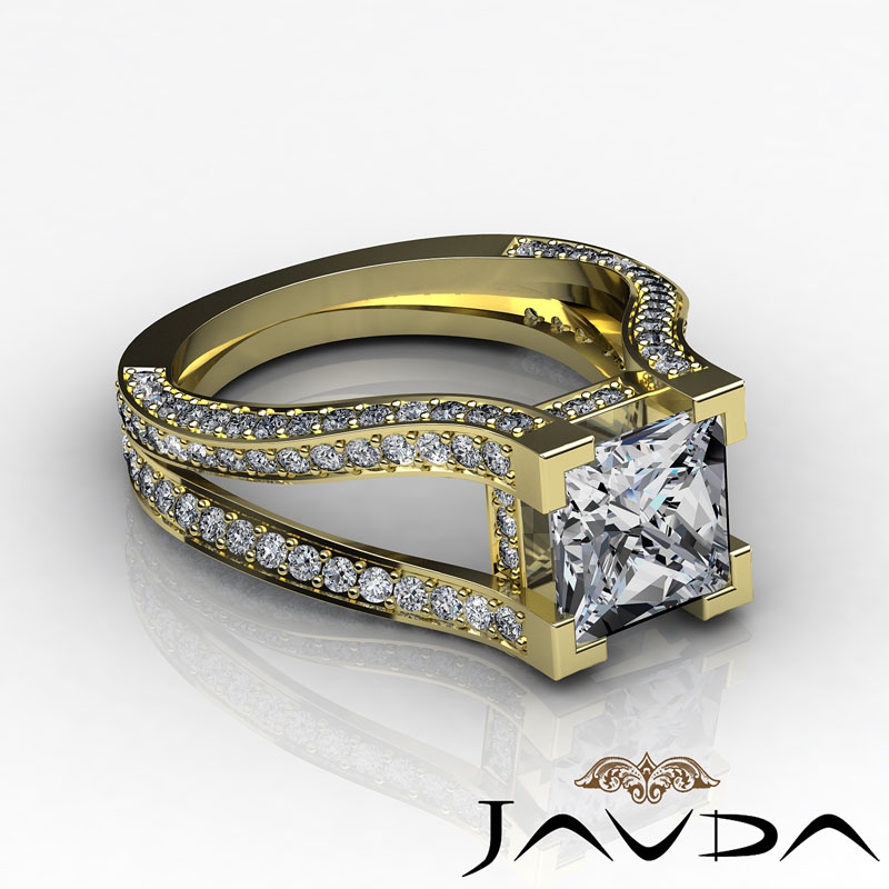 style Engagement Ring, center is Princess shape Diamond Report by GIA, J Color & VS1 clarity, Made in 18k Yellow Gold (2.33 ct. tw.)