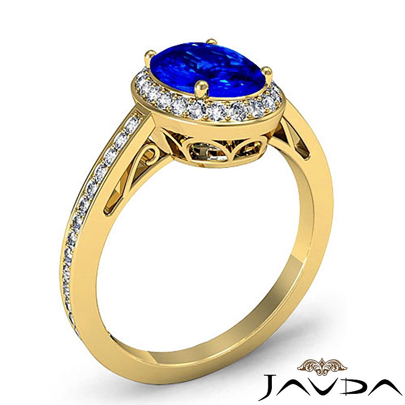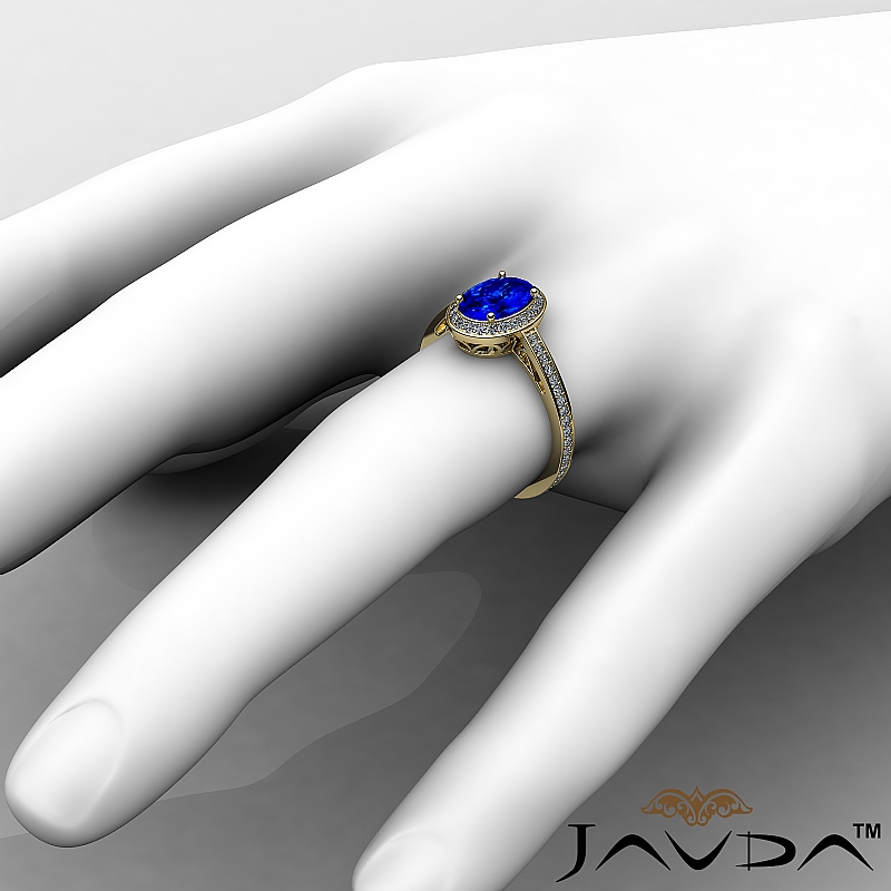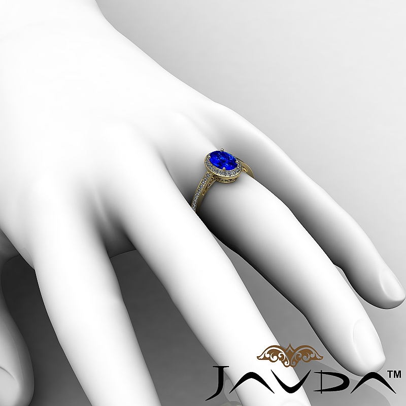 Halo Pave Sidestone Filigree style Engagement Ring, center is Oval shape D Block Tanzanite Report by , Color & clarity, Made in 14k Yellow Gold (1.5 ct. tw.)