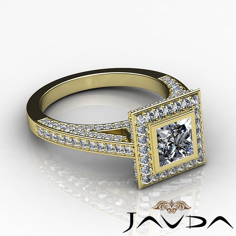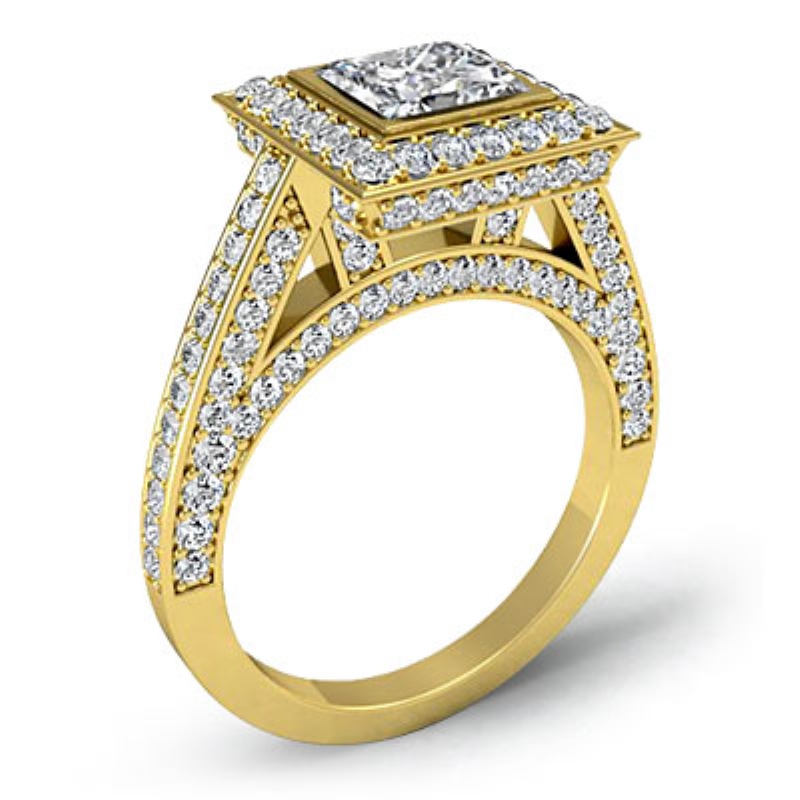 1.65Ct Halo Diamond Engagement Princess Semi Mount Ring 14k Yellow Gold.