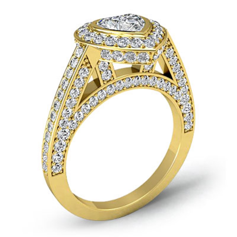 1.65Ct Halo Diamond Engagement Princess Semi Mount Ring 14k Yellow Gold.