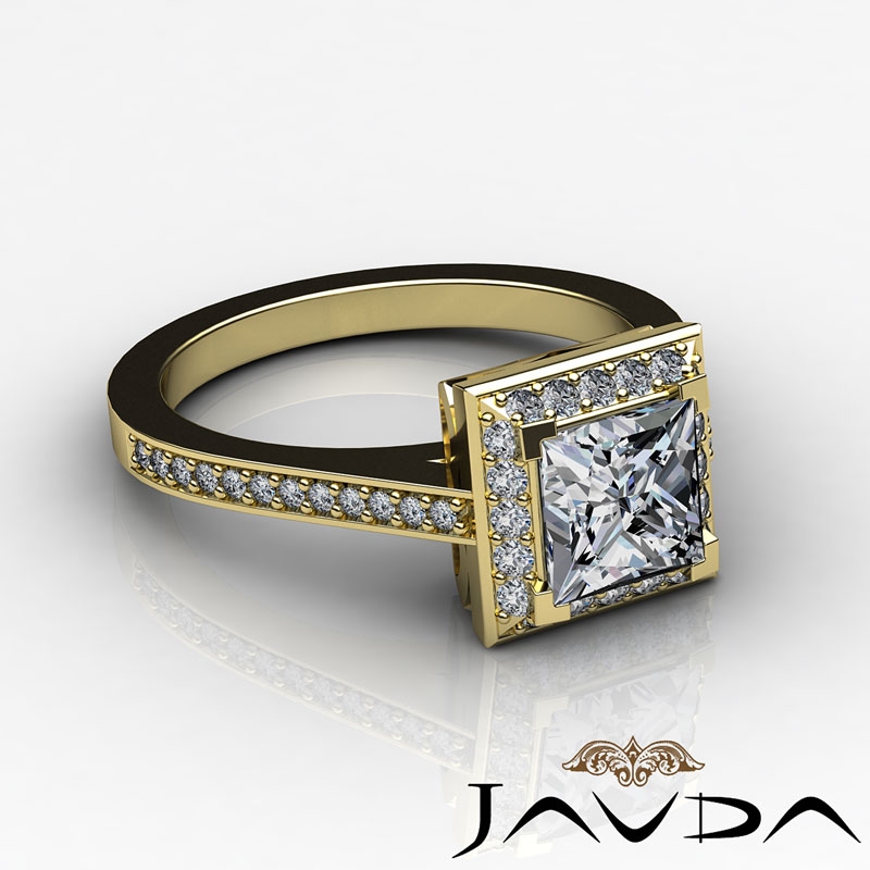 0.5Ct Diamond Engagement Halo Setting Ring Princess Semi Mount 18k Yellow Gold.