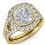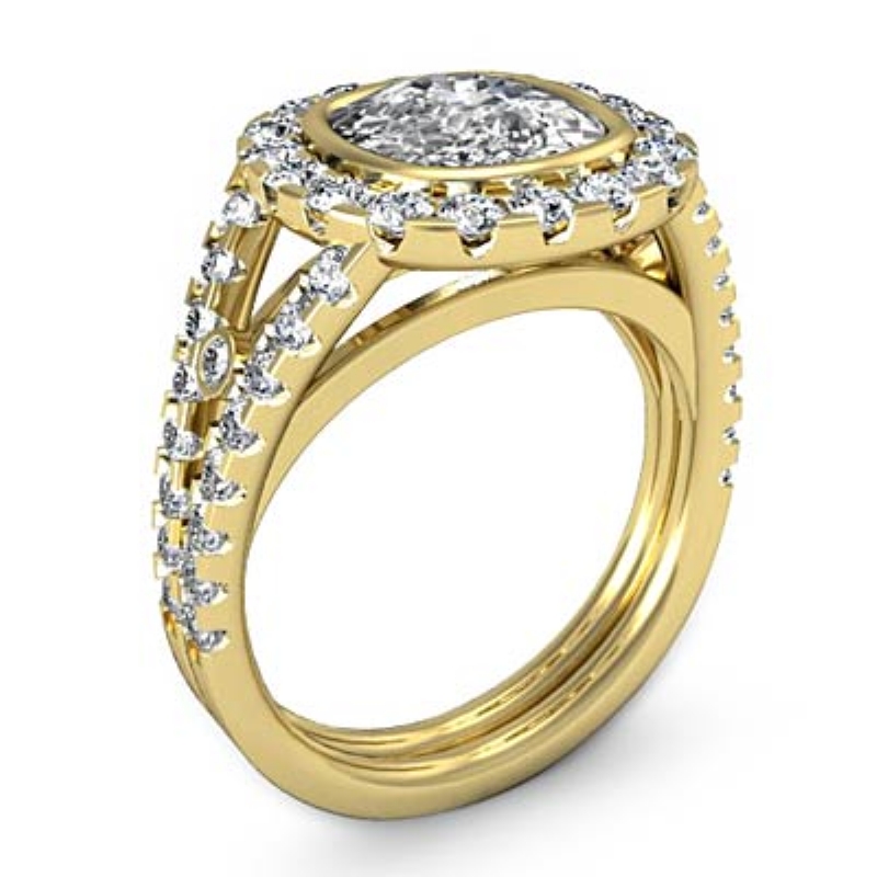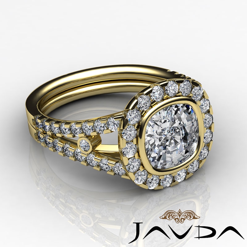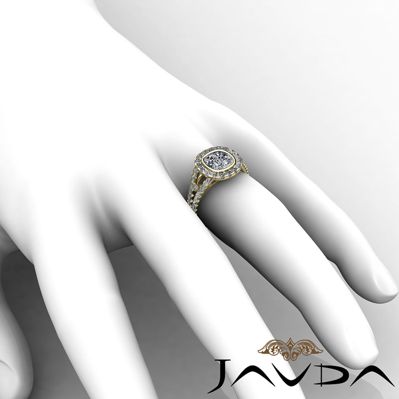 1.11Ct Diamond Engagement Ring Cushion Semi Mount 18k Yellow Gold Halo Setting.