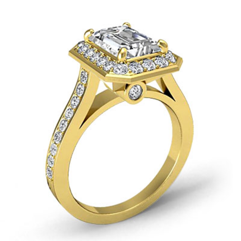 Halo Pave Setting Bezel style Engagement Ring, center is Emerald shape Diamond Report by GIA, D Color & IF clarity, Made in 14k Yellow Gold (1.2 ct. tw.)