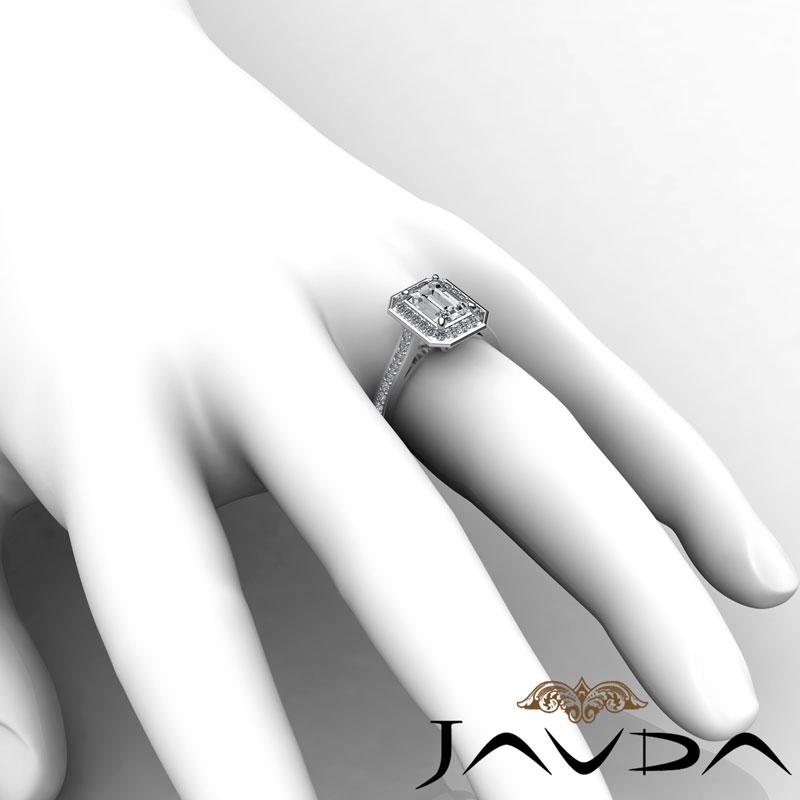 0.7Ct Diamond Engagement Ring Emerald Semi Mount Halo Setting 18k White Gold.