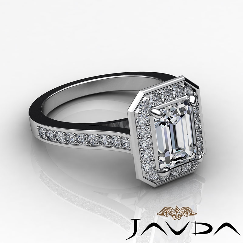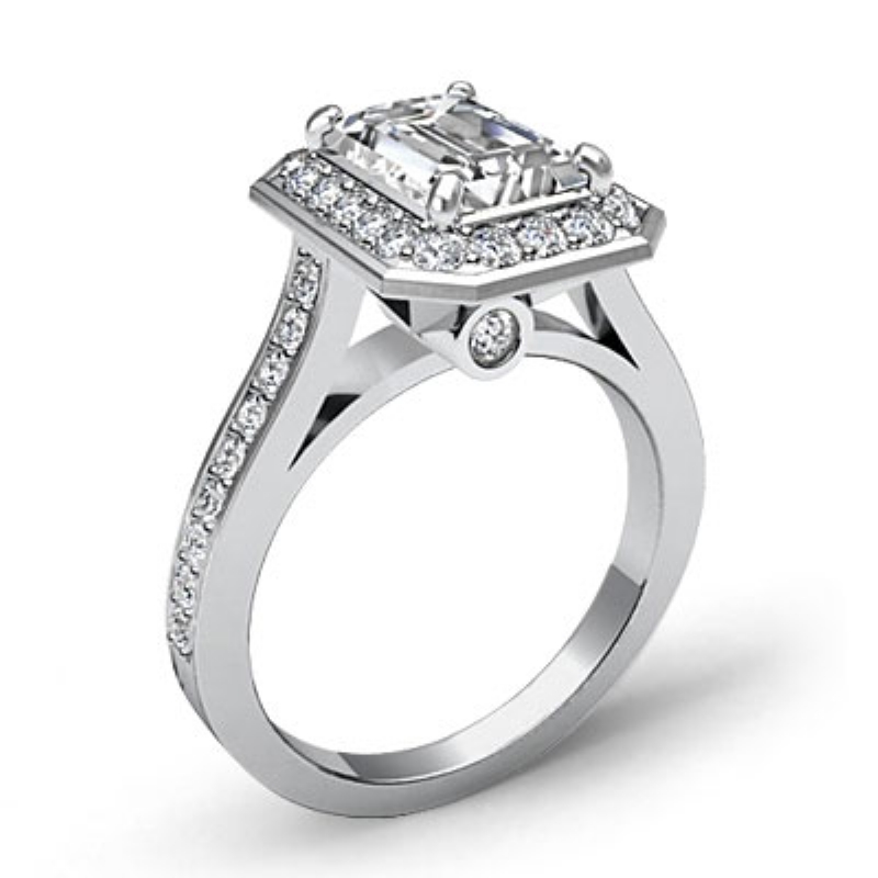 Halo Pave Setting Bezel style Engagement Ring, center is Emerald shape Diamond Report by GIA, D Color & IF clarity, Made in 18k White Gold (1.2 ct. tw.)