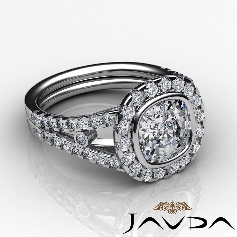 1.11Ct Diamond Engagement Ring Cushion Semi Mount Platinum 950 Halo Setting.