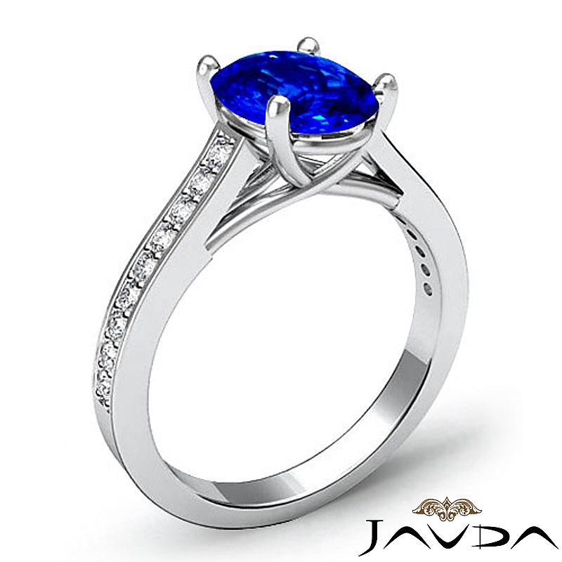 Petite Trellis Sidestone style Engagement Ring, center is Oval shape D Block Tanzanite Report by , Color & clarity, Made in Platinum 950 (1.3 ct. tw.)