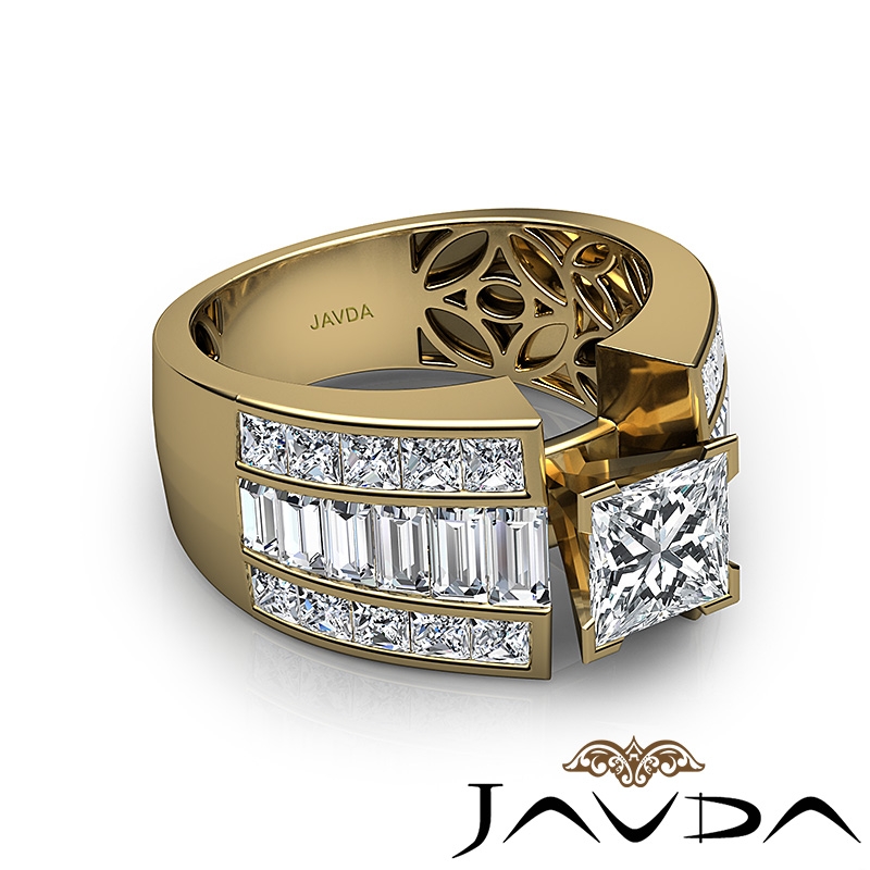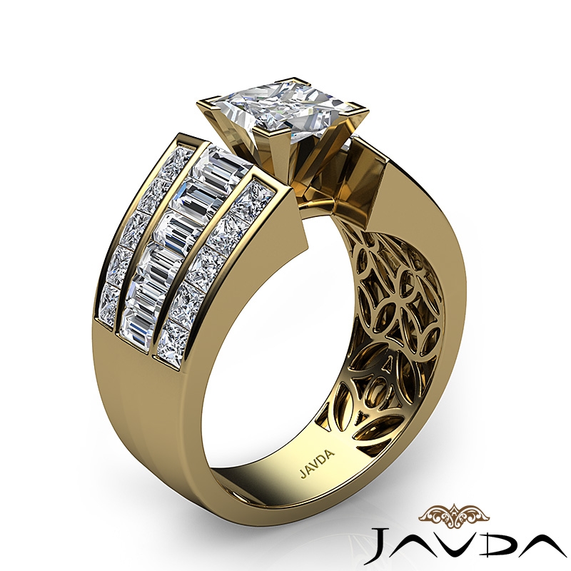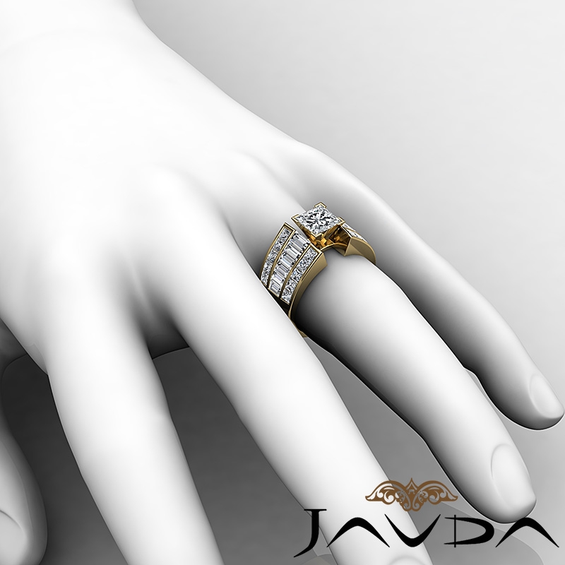 3.2Ct Princess Baguette Side Diamond Engagement Setting Ring 14k Yellow Gold Semi Mount.