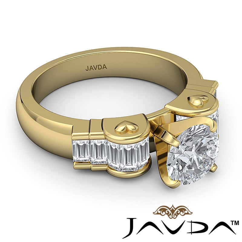 1.2Ct Baguette Semi Mount Diamond Engagement Ring 18k Yellow Gold Invisible.