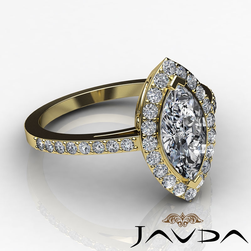 Halo Sidestone Pave Set style Engagement Ring, center is Marquise shape Diamond Report by GIA, I Color & SI1 clarity, Made in 18k Yellow Gold (1.4 ct. tw.)