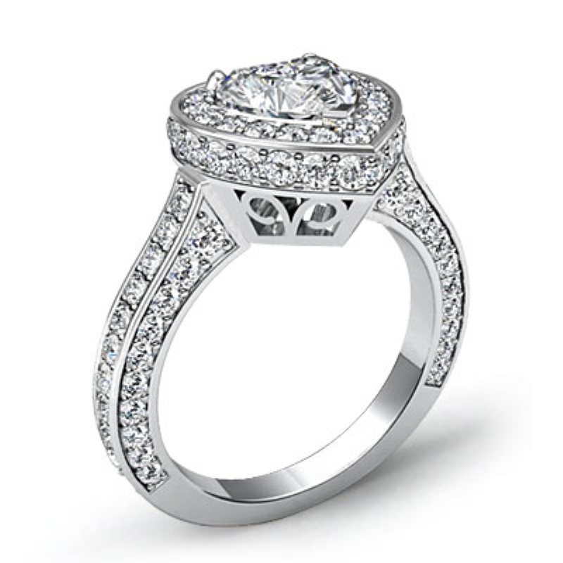 1.6Ct Diamond Engagement Ring Heart Semi Mount Halo Pave Setting Platinum 950.