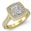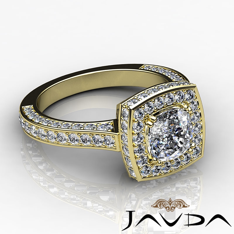 Circa Halo Side-Stone Pave style Engagement Ring, center is Cushion shape Diamond Report by GIA, I Color & VS1 clarity, Made in 14k Yellow Gold (2.55 ct. tw.)