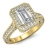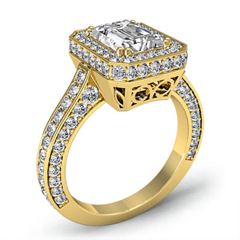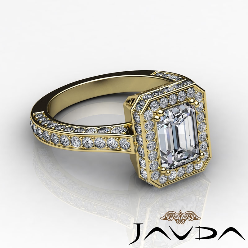 Circa Halo Side-Stone Pave style Engagement Ring, center is Emerald shape Diamond Report by GIA, D Color & VVS1 clarity, Made in 14k Yellow Gold (2.4 ct. tw.)