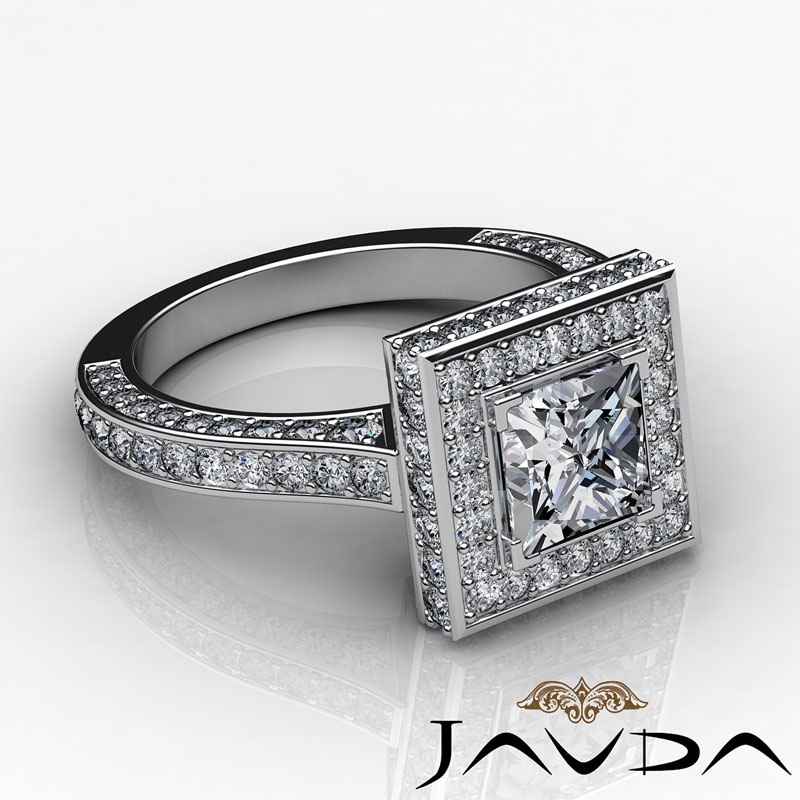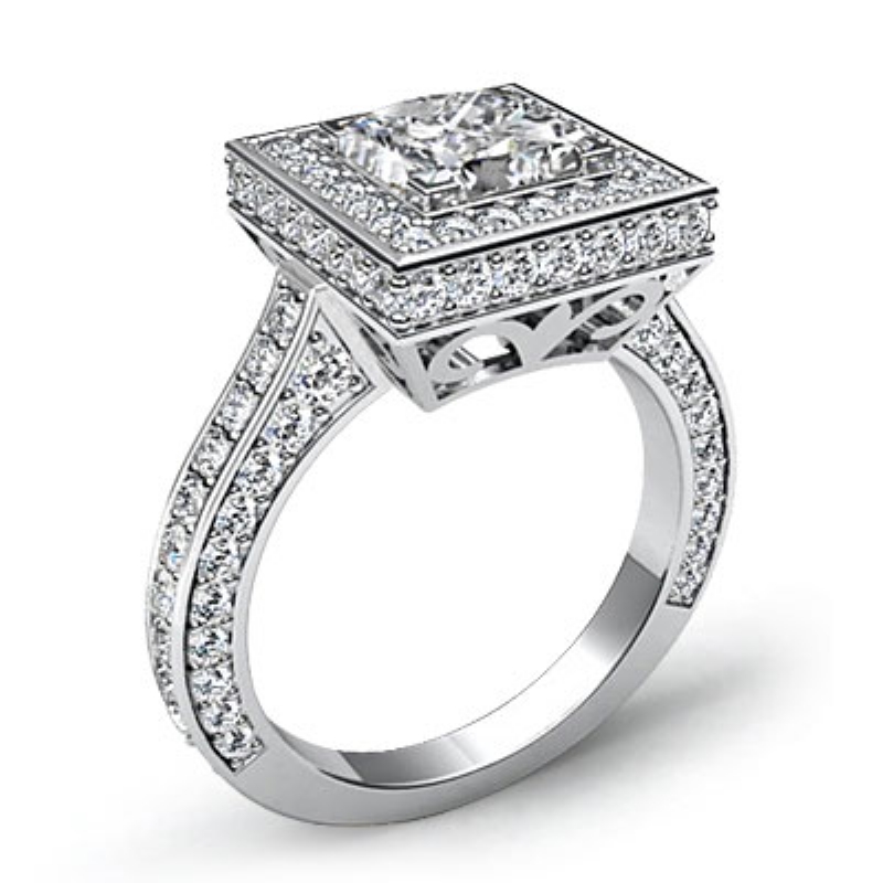 Circa Halo Side-Stone Pave style Engagement Ring, center is Princess shape Diamond Report by GIA, I Color & VVS1 clarity, Made in 18k White Gold (2.6 ct. tw.)