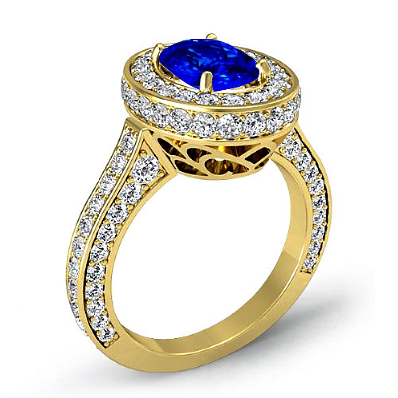 Circa Halo Side-Stone Pave style Engagement Ring, center is Oval shape D Block Tanzanite Report by , Color & clarity, Made in 18k Yellow Gold (2.6 ct. tw.)