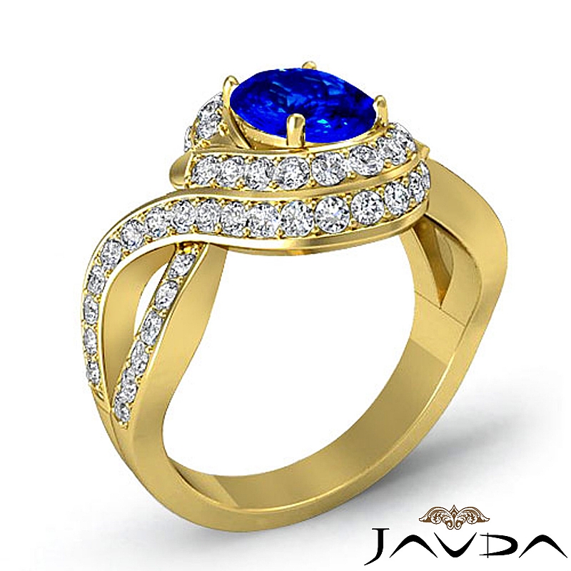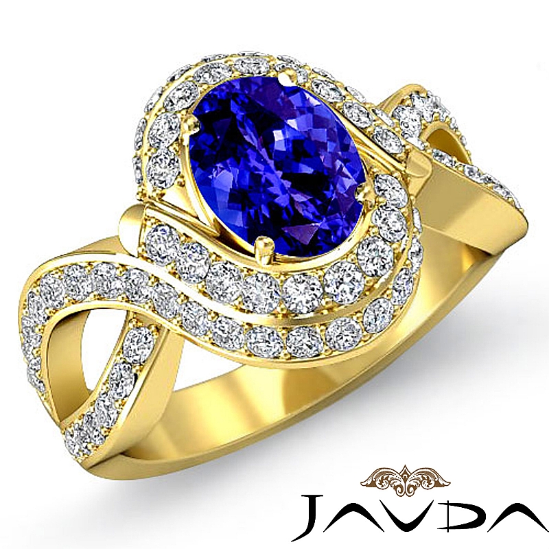 Curve Shank Halo Pave style Engagement Ring, center is Oval shape D Block Tanzanite Report by , Color & clarity, Made in 14k Yellow Gold (2 ct. tw.)