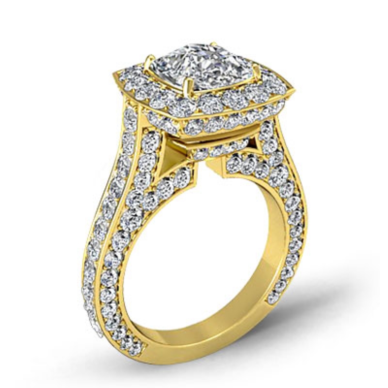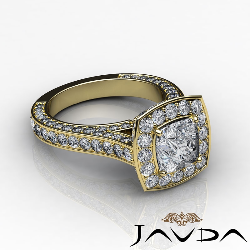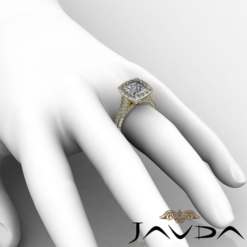 2.1Ct Cushion Diamond Engagement Ring 14k Yellow Gold Halo Pave Setting SemiMount - javda.com