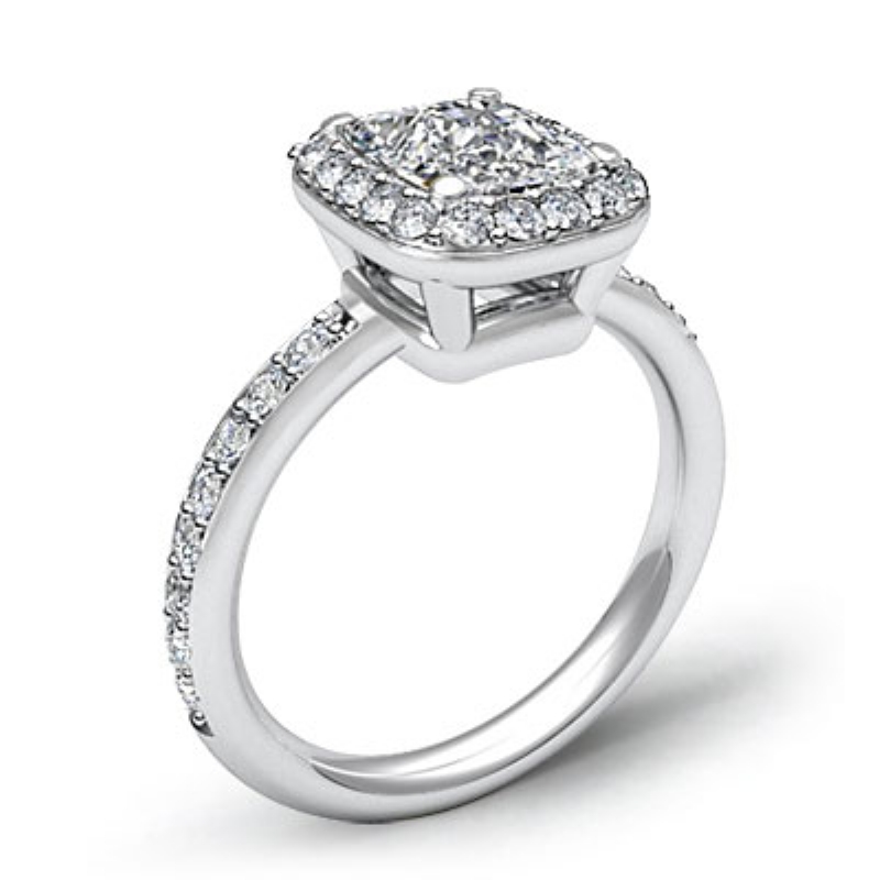 Basket Style Halo Pave style Engagement Ring, center is Cushion shape Diamond Report by GIA, E Color & VVS2 clarity, Made in 18k White Gold (1.36 ct. tw.)