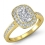 1Ct Diamond Engagement Cushion Shape Semi Mount Ring 14k Yellow Gold Halo Setting.