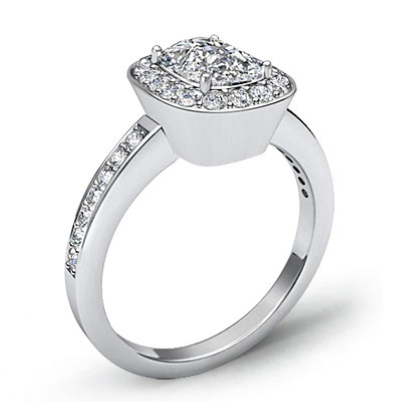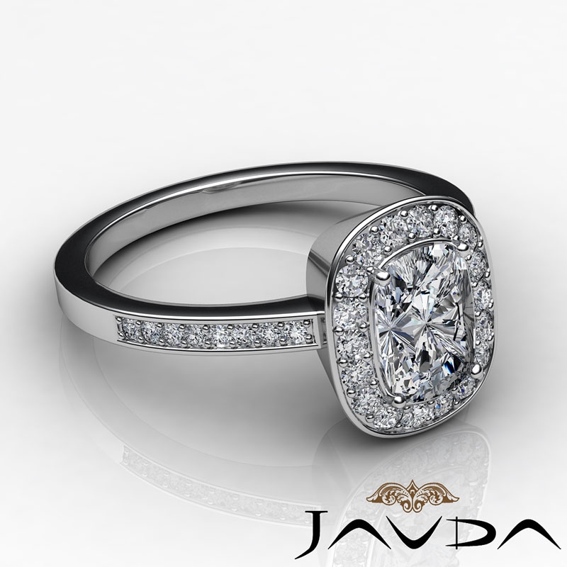 1Ct Diamond Engagement Cushion Shape Semi Mount Ring Platinum 950 Halo Setting.