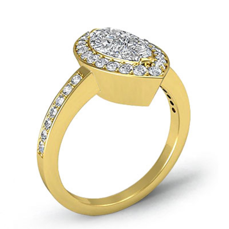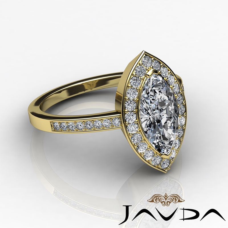 1Ct Halo Setting Diamond Engagement Marquise Shape SemiMount Ring 14k Yellow Gold.