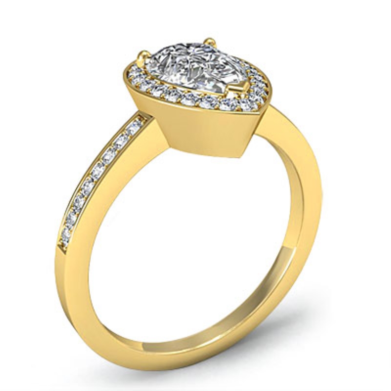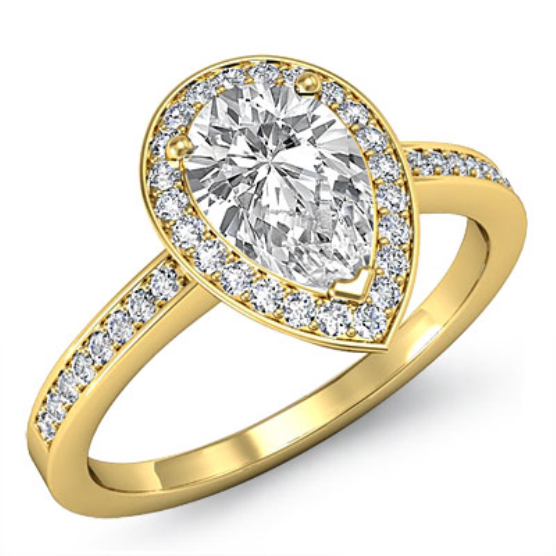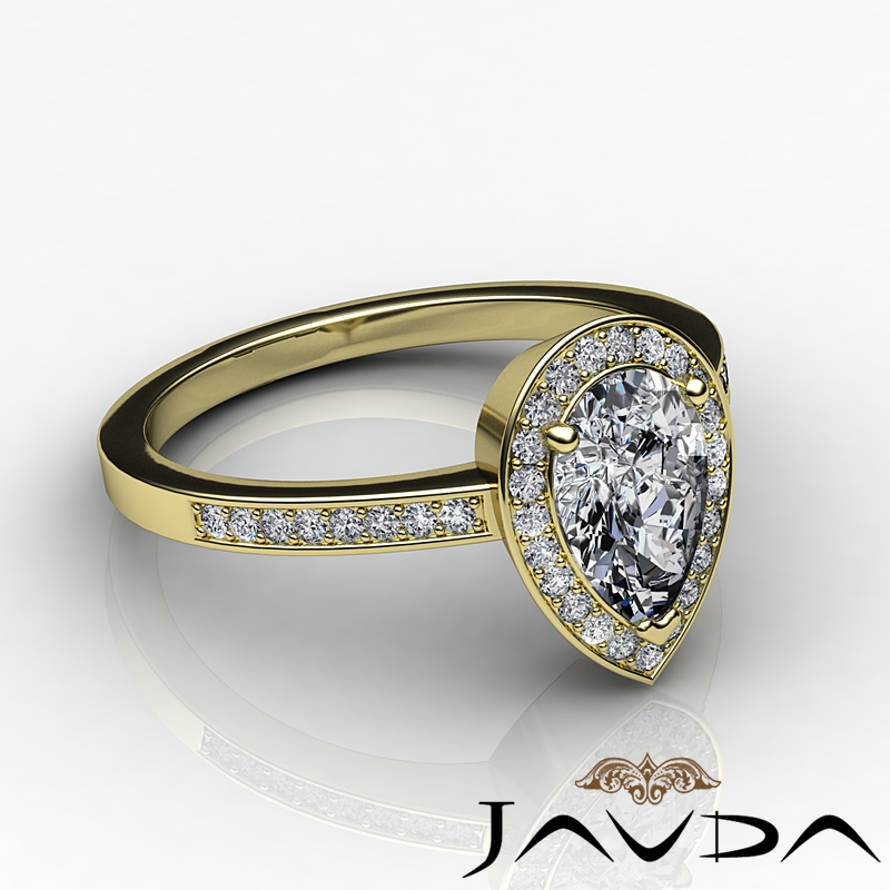 1Ct Diamond Engagement Halo Pave Setting Ring Pear Semi Mount 18k Yellow Gold.