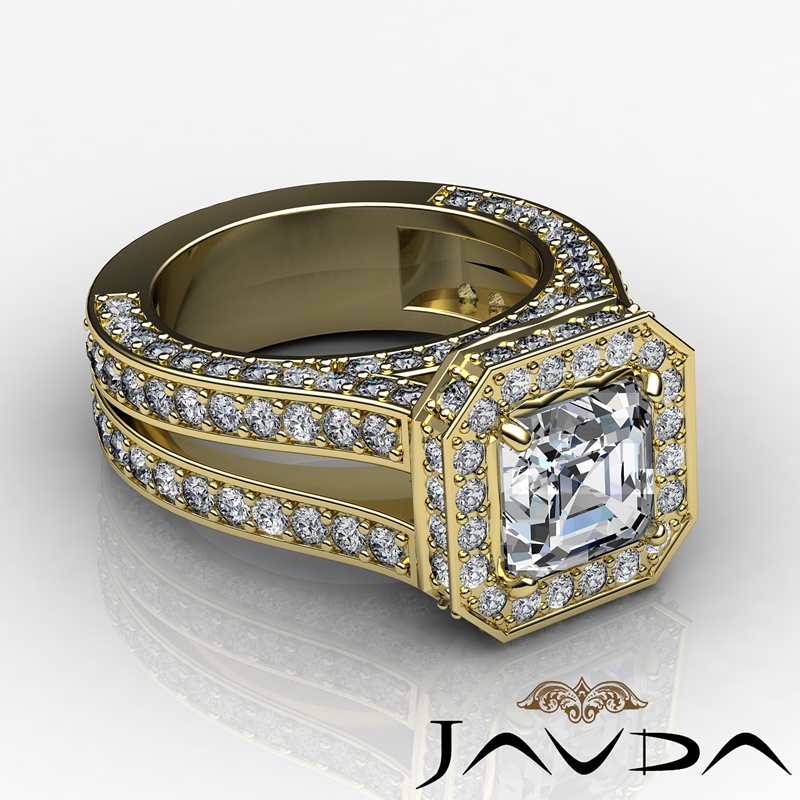 2.52Ct Diamond Engagement Ring Princess Semi Mount Halo Setting 14k Yellow Gold.
