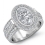 1.65Ct Diamond Engagement Halo Pave Setting Ring Oval Semi Mount 18k White Gold.