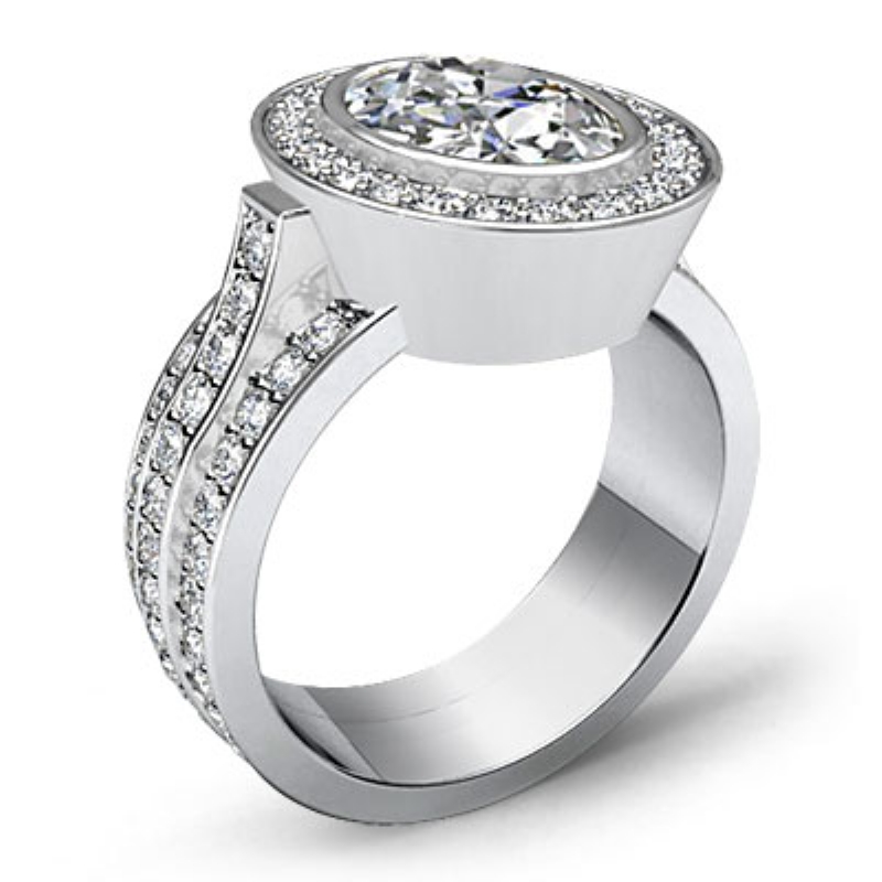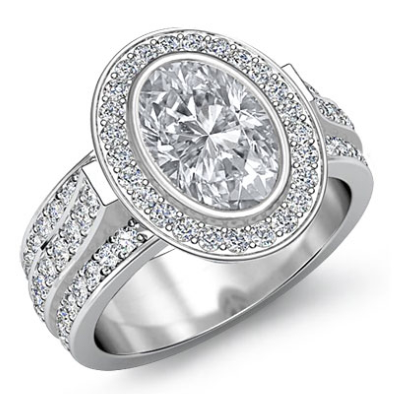 Halo Bezel Pave Set Shank style Engagement Ring, center is Oval shape Diamond Report by GIA, D Color & VVS1 clarity, Made in 18k White Gold (2.45 ct. tw.)