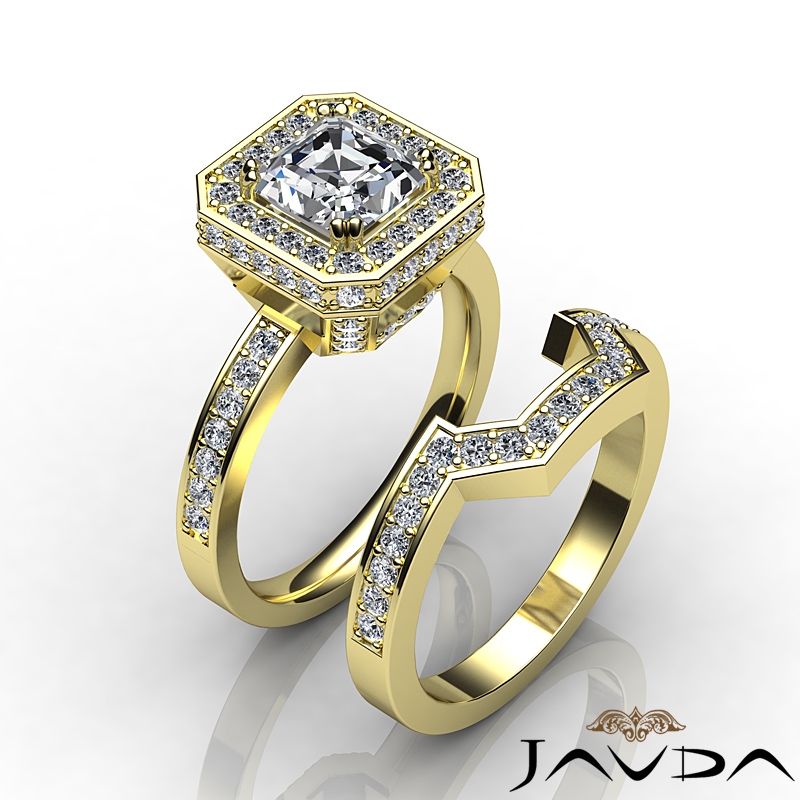 Basket Halo Pave Bridal Set style Engagement Ring, center is Princess shape Diamond Report by GIA, J Color & VS1 clarity, Made in 18k Yellow Gold (2.51 ct. tw.)