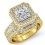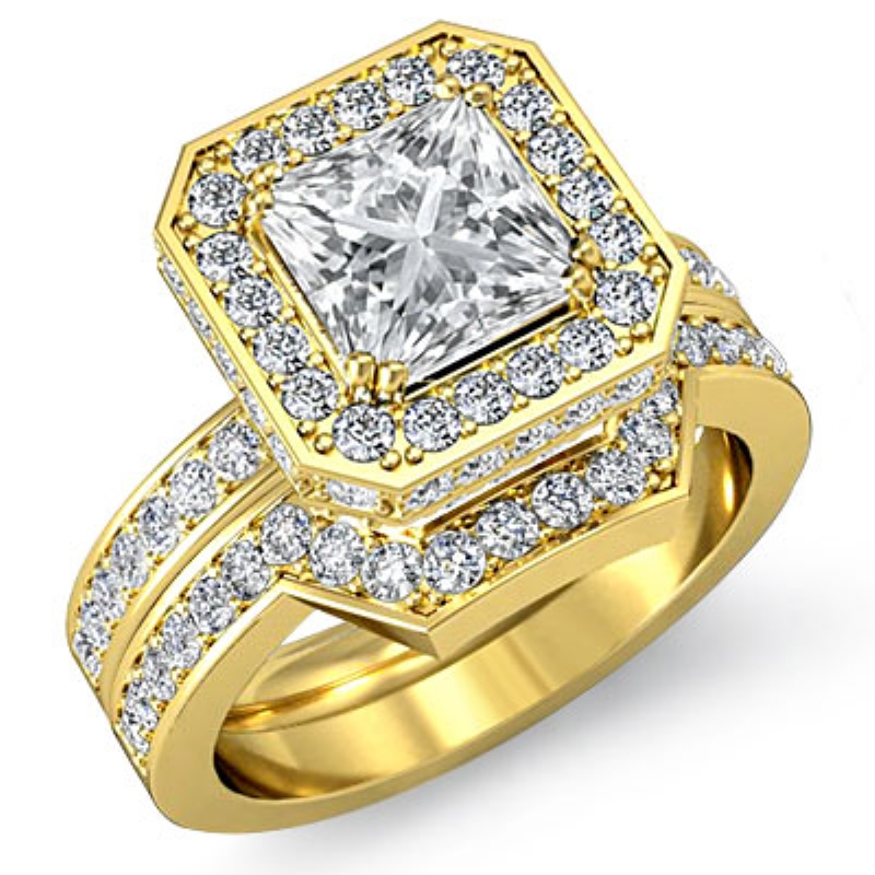 1.6Ct Diamond Engagement Halo Ring Princess Bridal Sets 18k Yellow Gold Semi Mount.