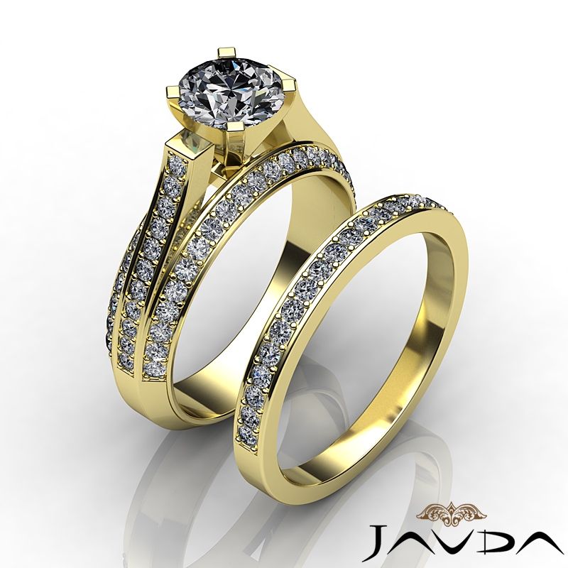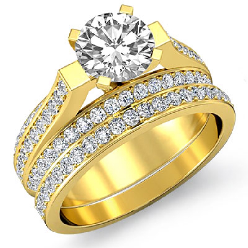 1.9Ct Diamond Engagement Pave Ring Round Bridal Sets 14k Yellow Gold Semi Mount.
