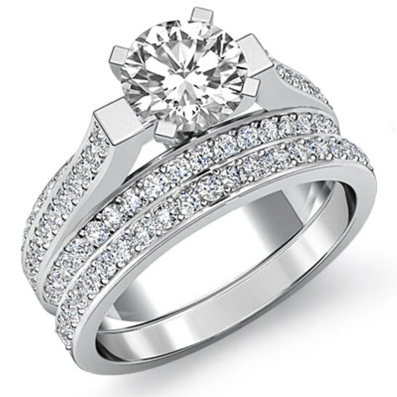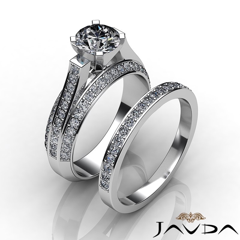 1.9Ct Diamond Engagement Pave Ring Round Bridal Sets 18k White Gold Semi Mount.
