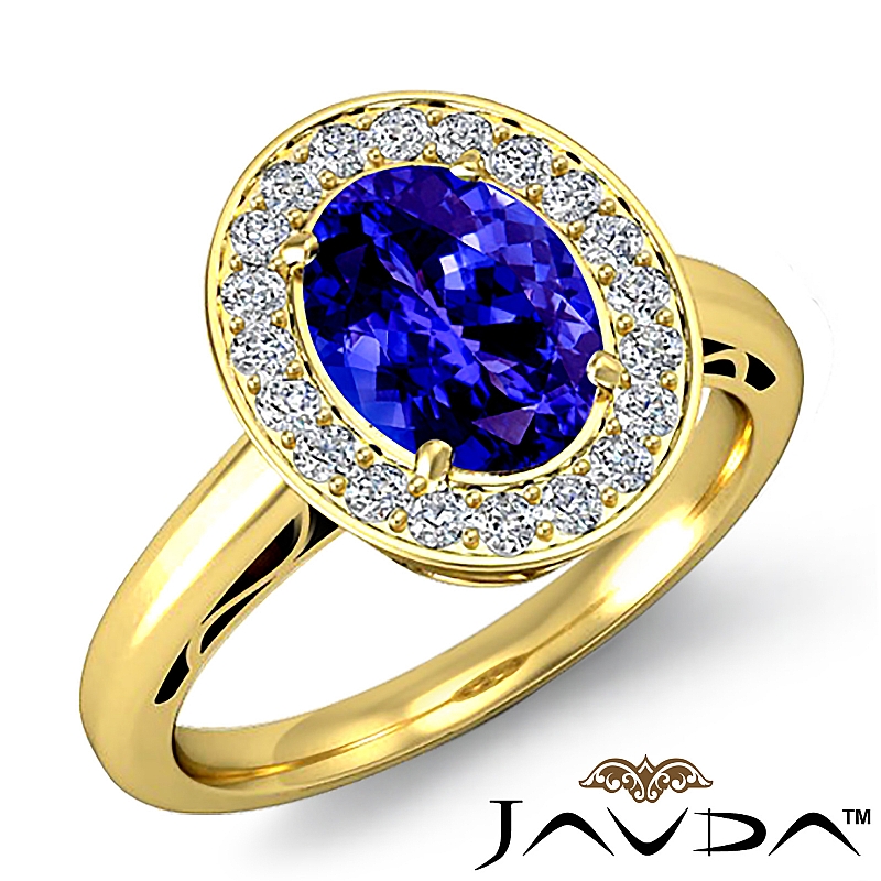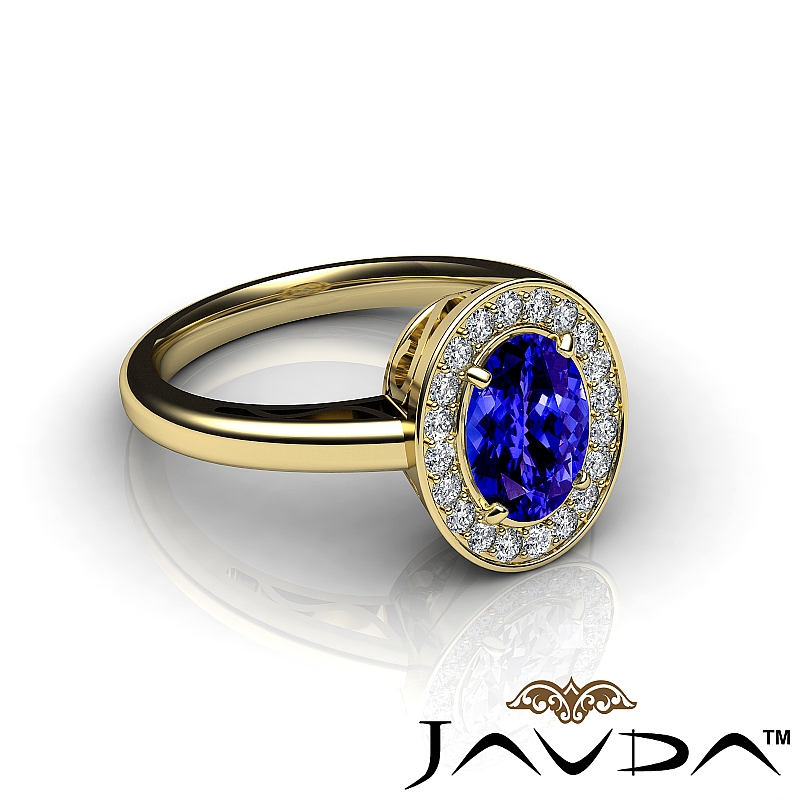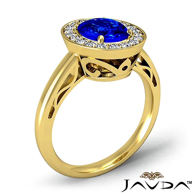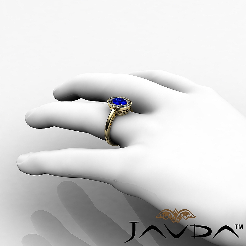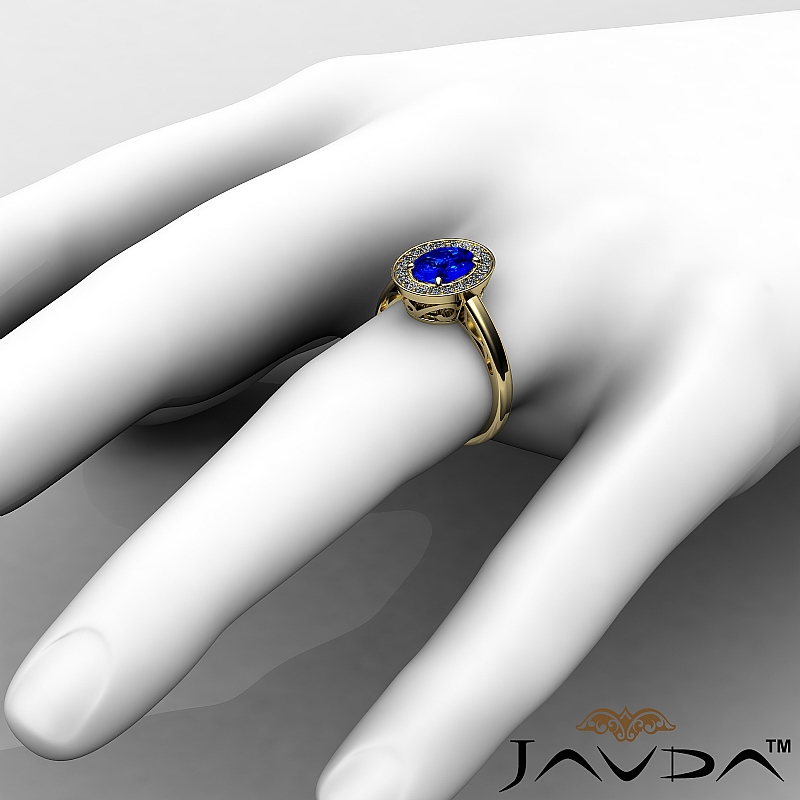 Halo Filigree Pave Setting style Engagement Ring, center is Oval shape D Block Tanzanite Report by , Color & clarity, Made in 18k Yellow Gold (1.36 ct. tw.)