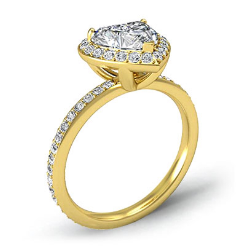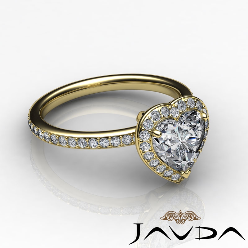 1Ct Diamond Engagement Heart Ring 14k Yellow Gold Halo Semi Mount.