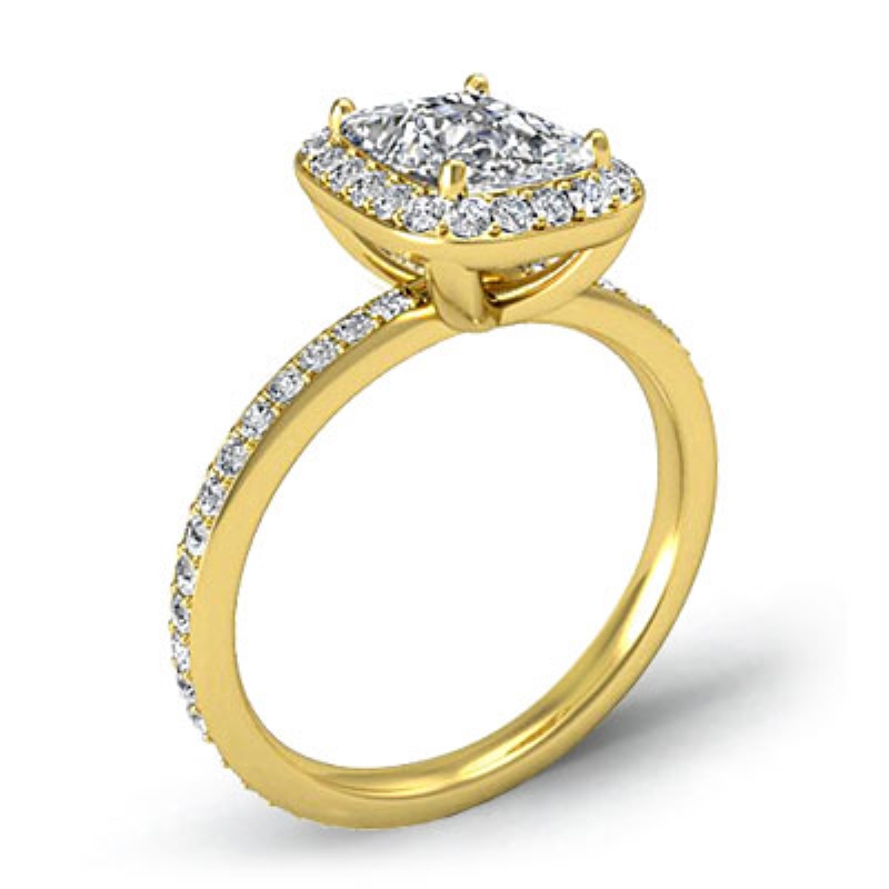 Eternity Basket Halo Pave Set style Engagement Ring, center is Cushion shape Diamond Report by GIA, I Color & VS1 clarity, Made in 14k Yellow Gold (1.95 ct. tw.)