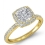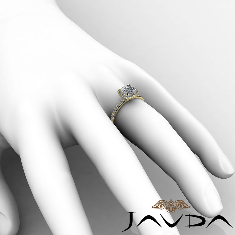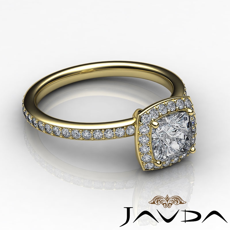 1Ct Diamond Engagement Ring Cushion Shape Semi Mount 18k Yellow Gold Halo Setting.