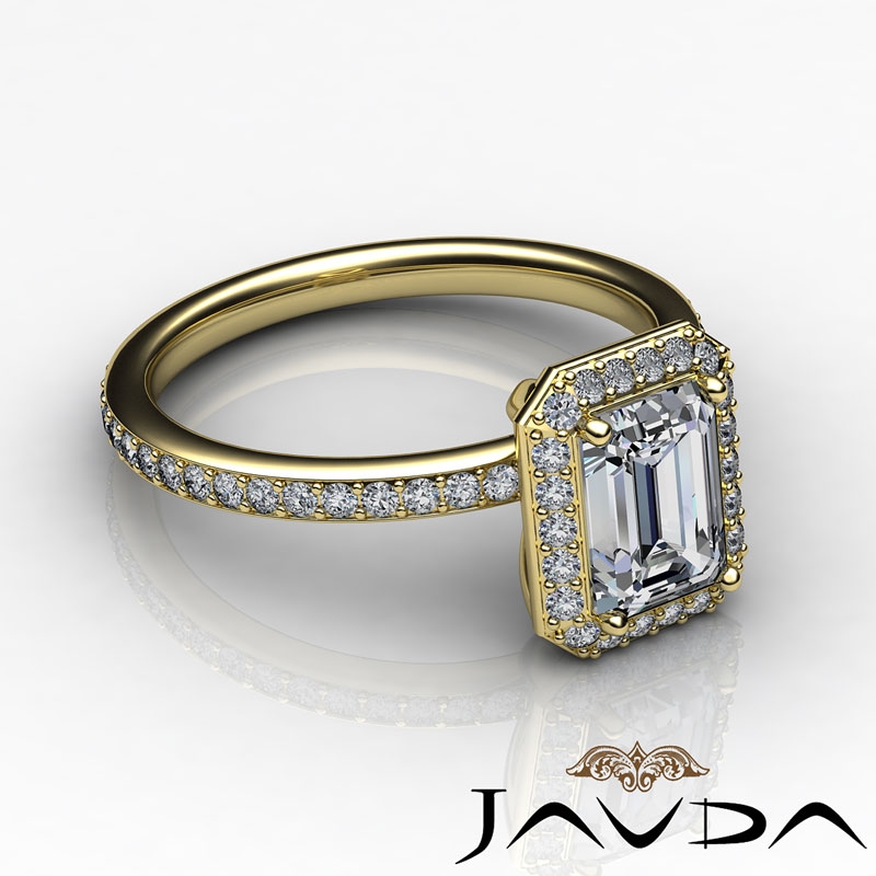 Micro Pave Set Halo Eternity style Engagement Ring, center is Emerald shape Diamond Report by GIA, D Color & VVS1 clarity, Made in 14k Yellow Gold (1.5 ct. tw.)