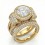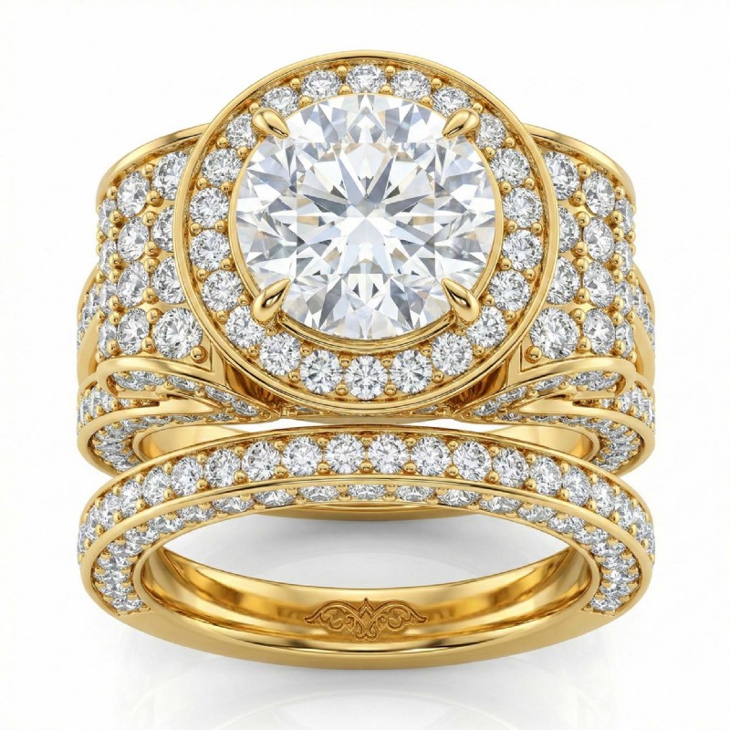 3.7Ct Diamond Engagement Ring Round Halo Pave Setting Bridal Set 18k Yellow Gold.